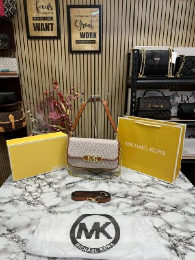 MICHAEL_KORS MK PARKER LEATHER SHOULDER BAG WITH OG BOX AND DUST BAG WITH SHOULDER STRAP WITH CARRY BAG (BIEGE BROWN)